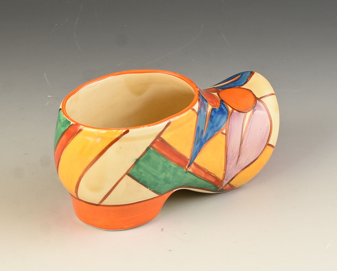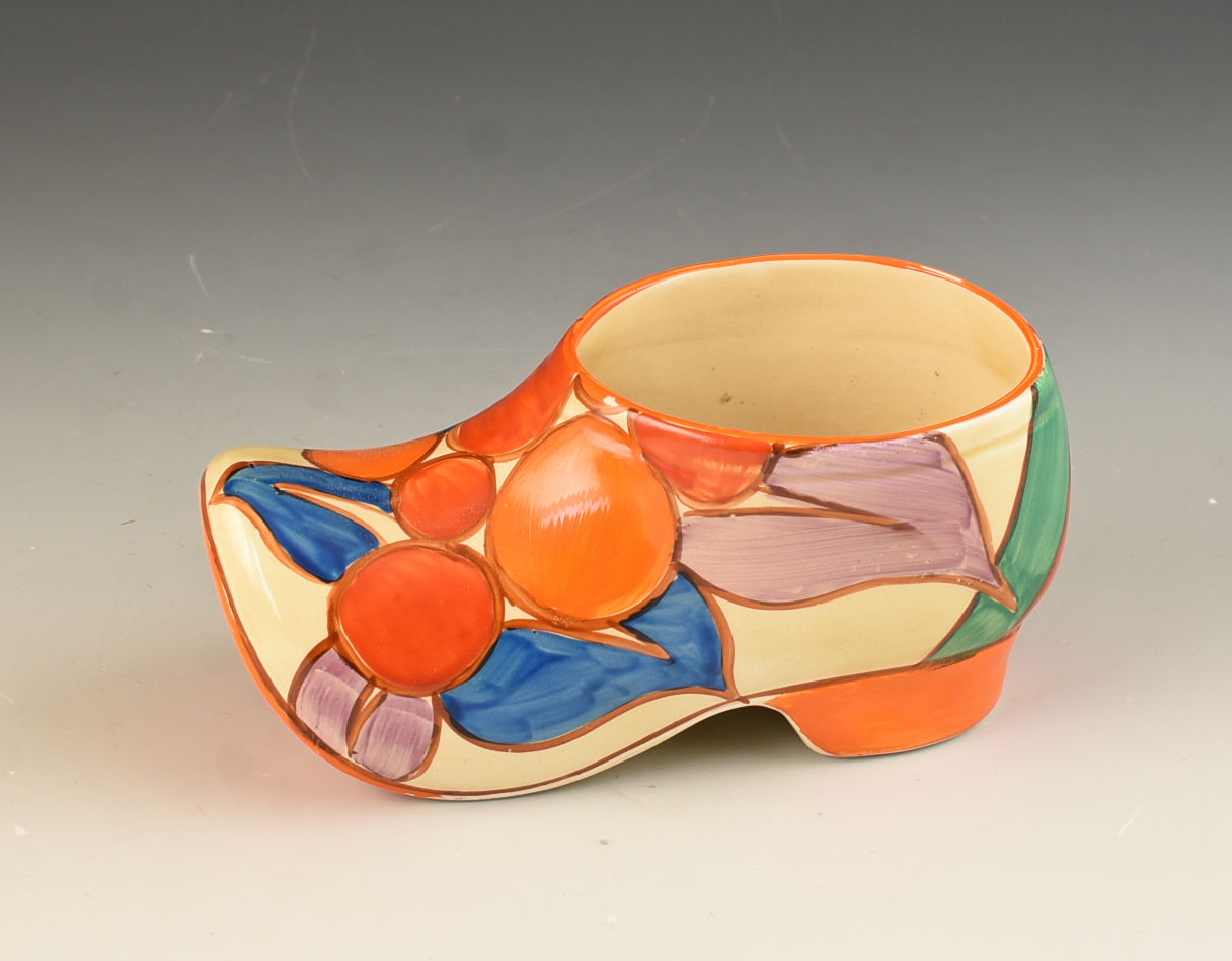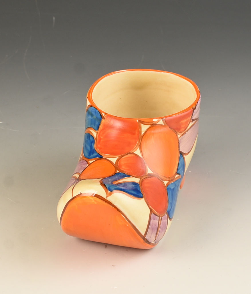 A superbly decorated large size clog in Berries. A rare abstract that really works well on the shape. A full version of the pattern, cleverly applied to the shape and i can GUARANTEE to be free from damage or restoration. It measures 5.25 or 13.5cm and is fully signed to the base.