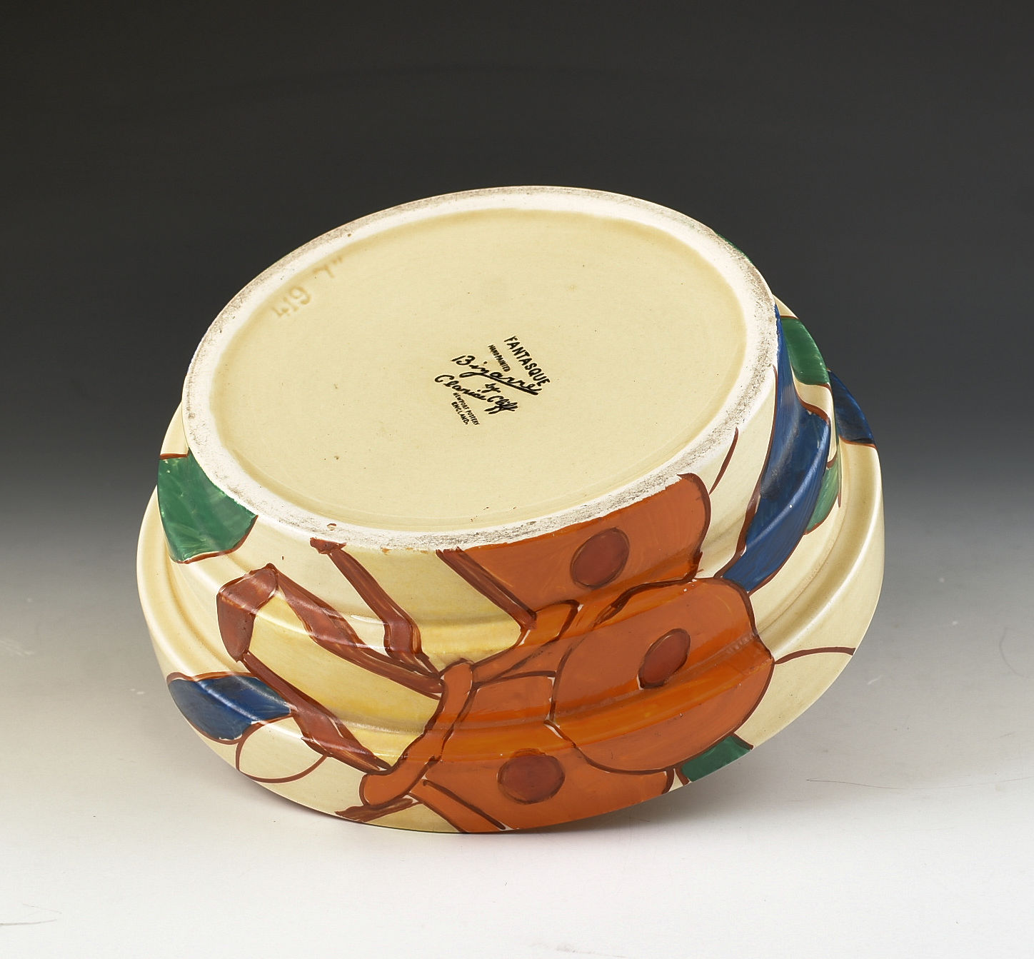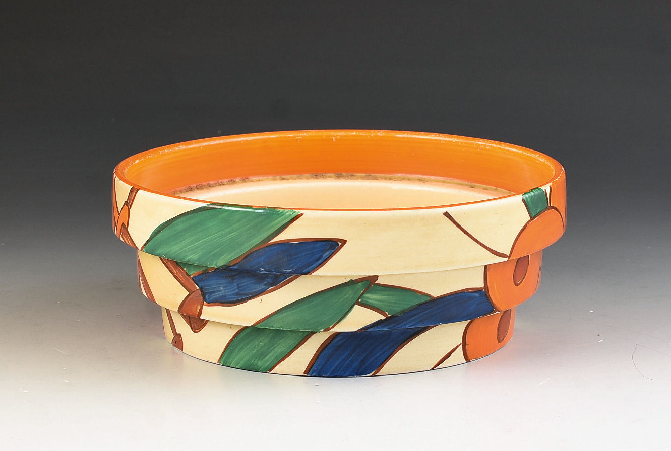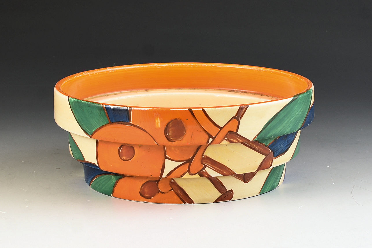 A rare and very strongly painted 419 shape stepped bowl in Bobbins that will date to 1930. A full and repeating version of the pattern painted really nicely to the shape. GUARANTEED to be free from damage or restoration it measures 17cm x 7cm and is fully signed to the base.