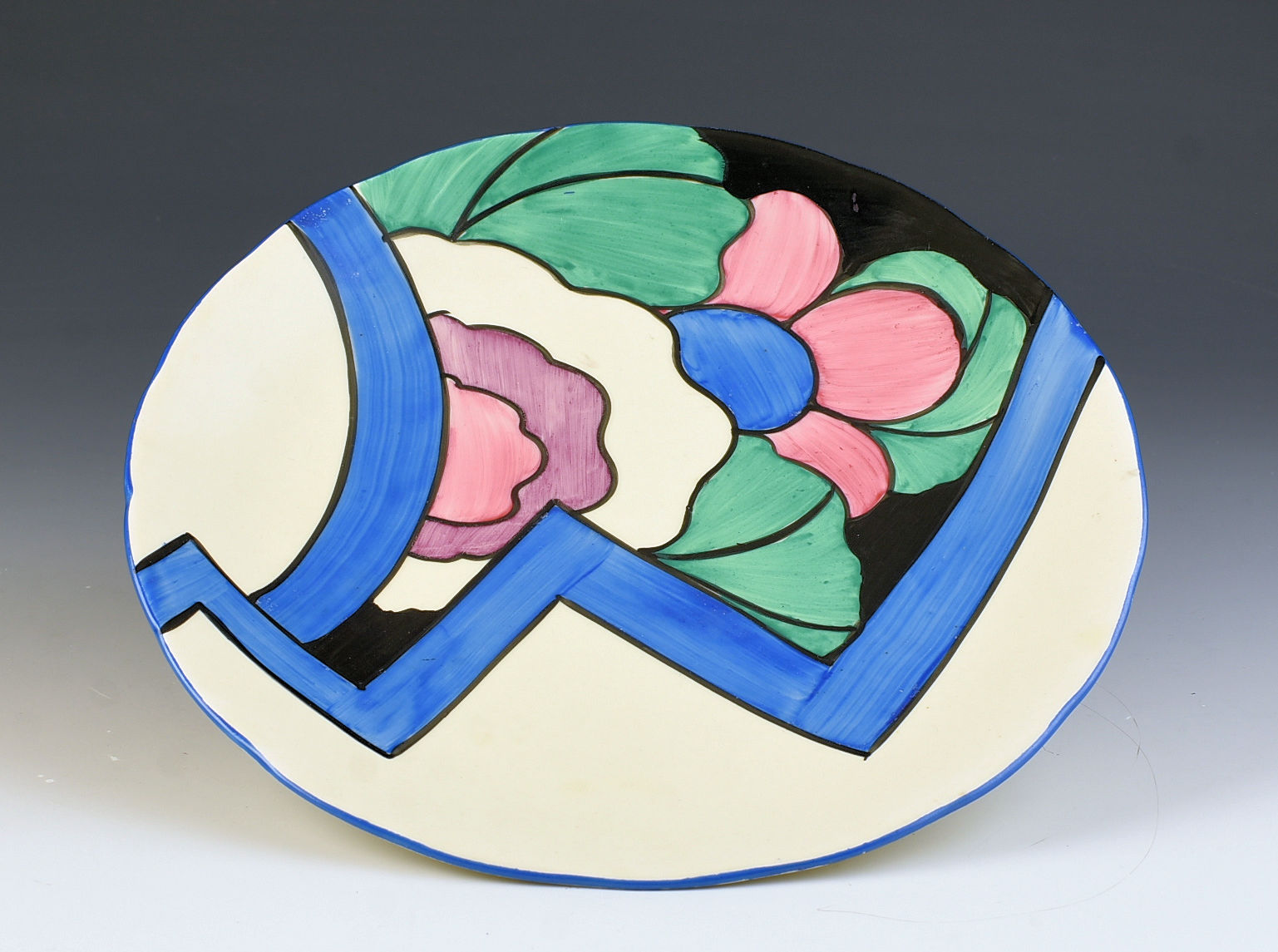 A rare and superbly decorated abstract design plate in Latona Dahlia. This dates to 1930 and is a great version of the pattern that displays perfectly on the shape. GUARANTEED to be free from damage or restoration it measures 23cm in diameter and is fully signed to the reverse.
