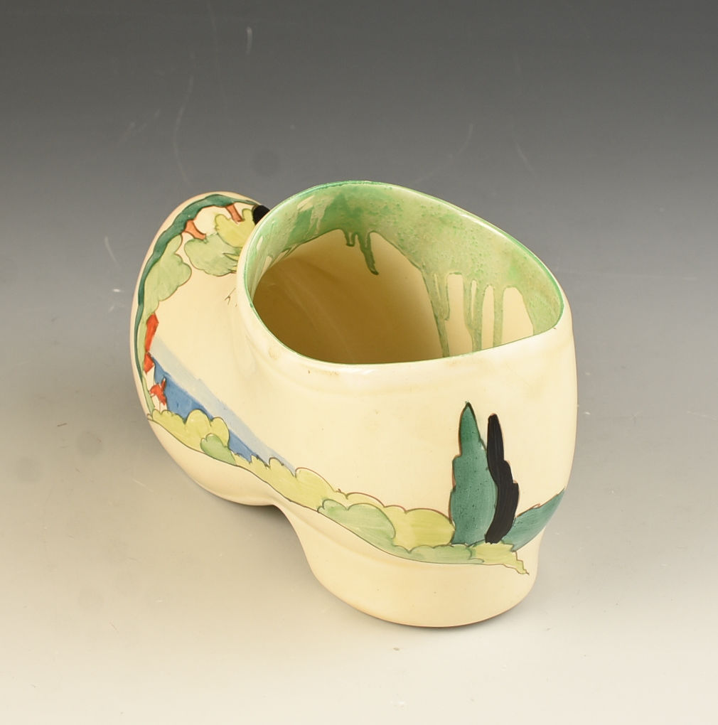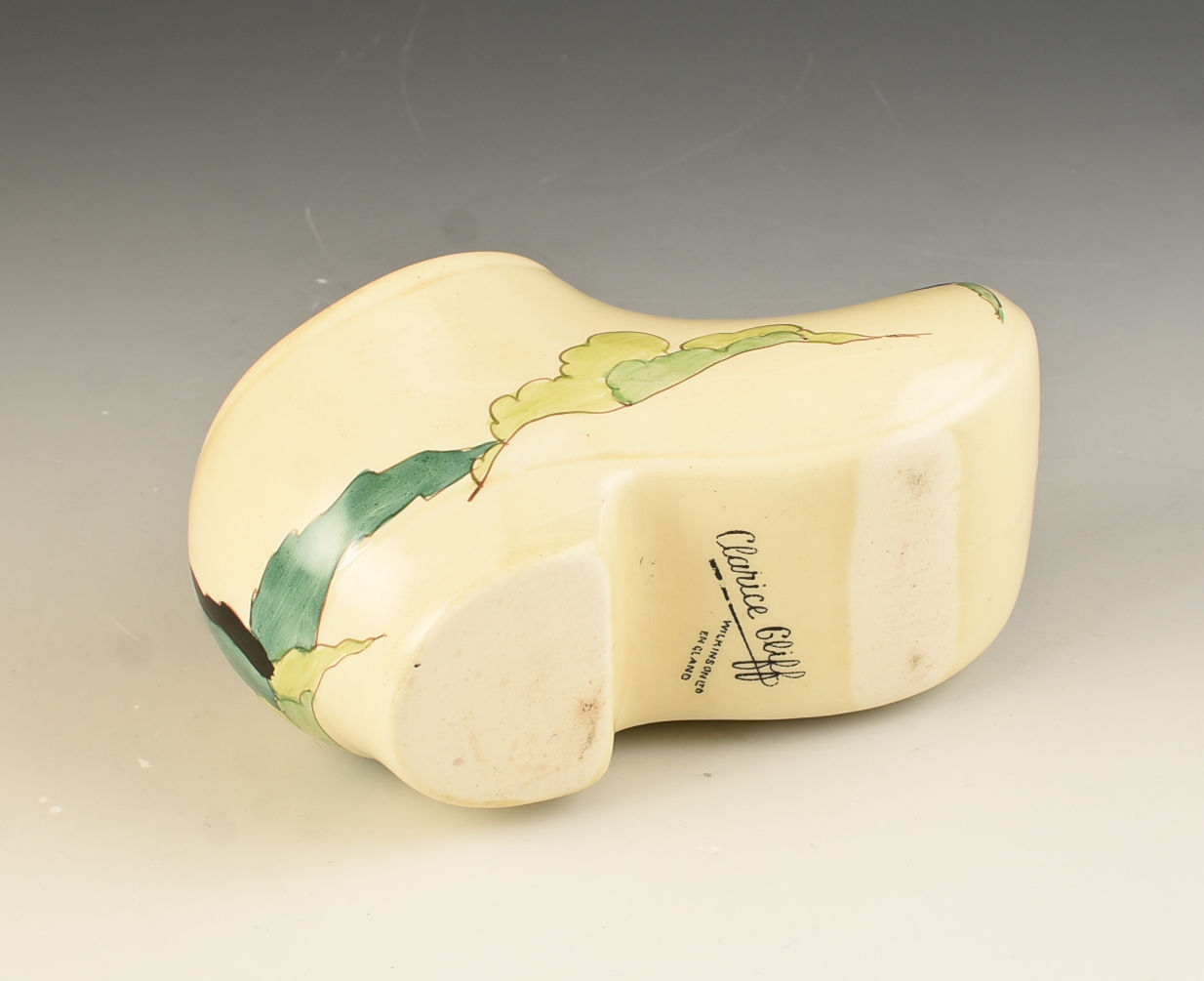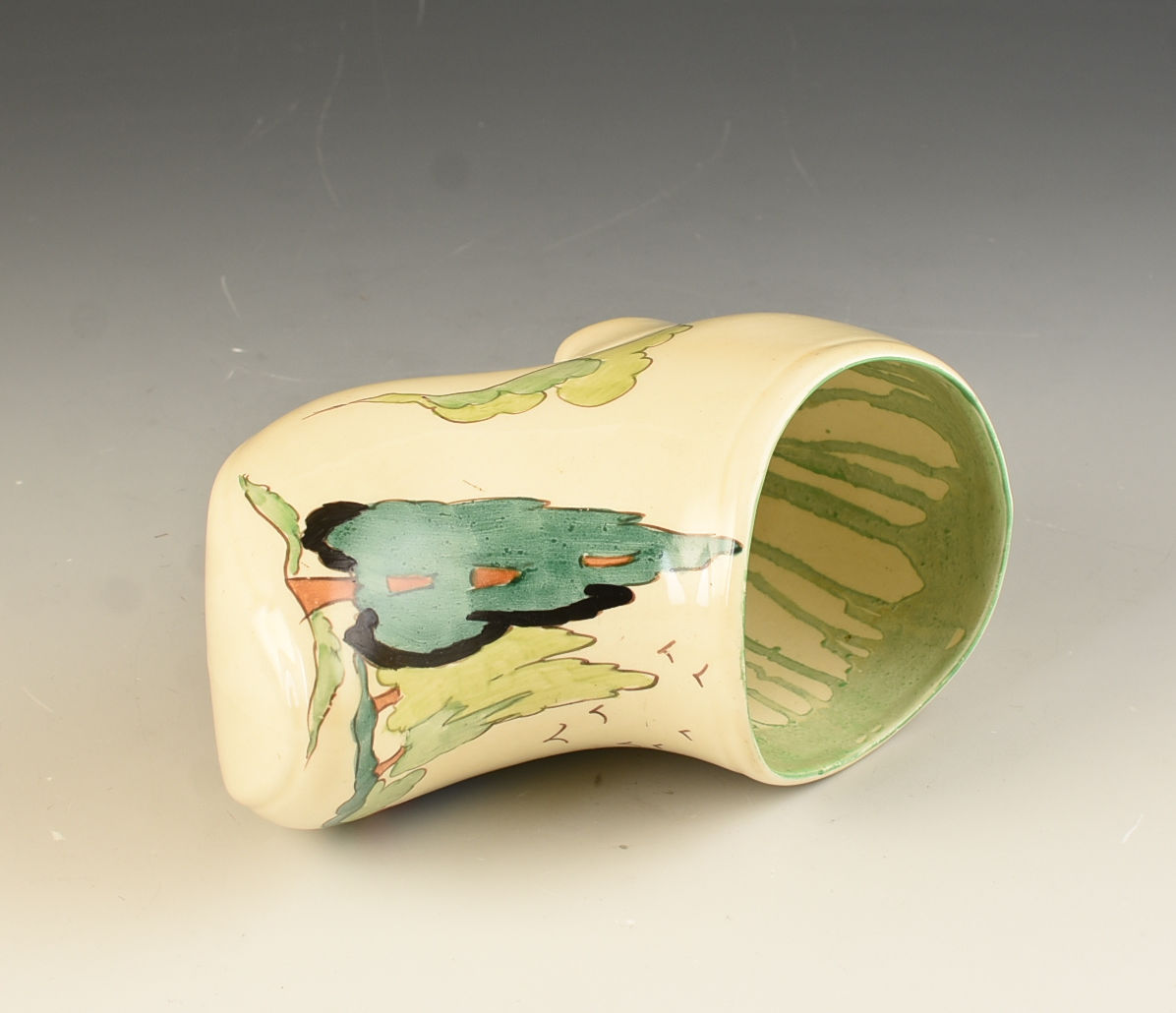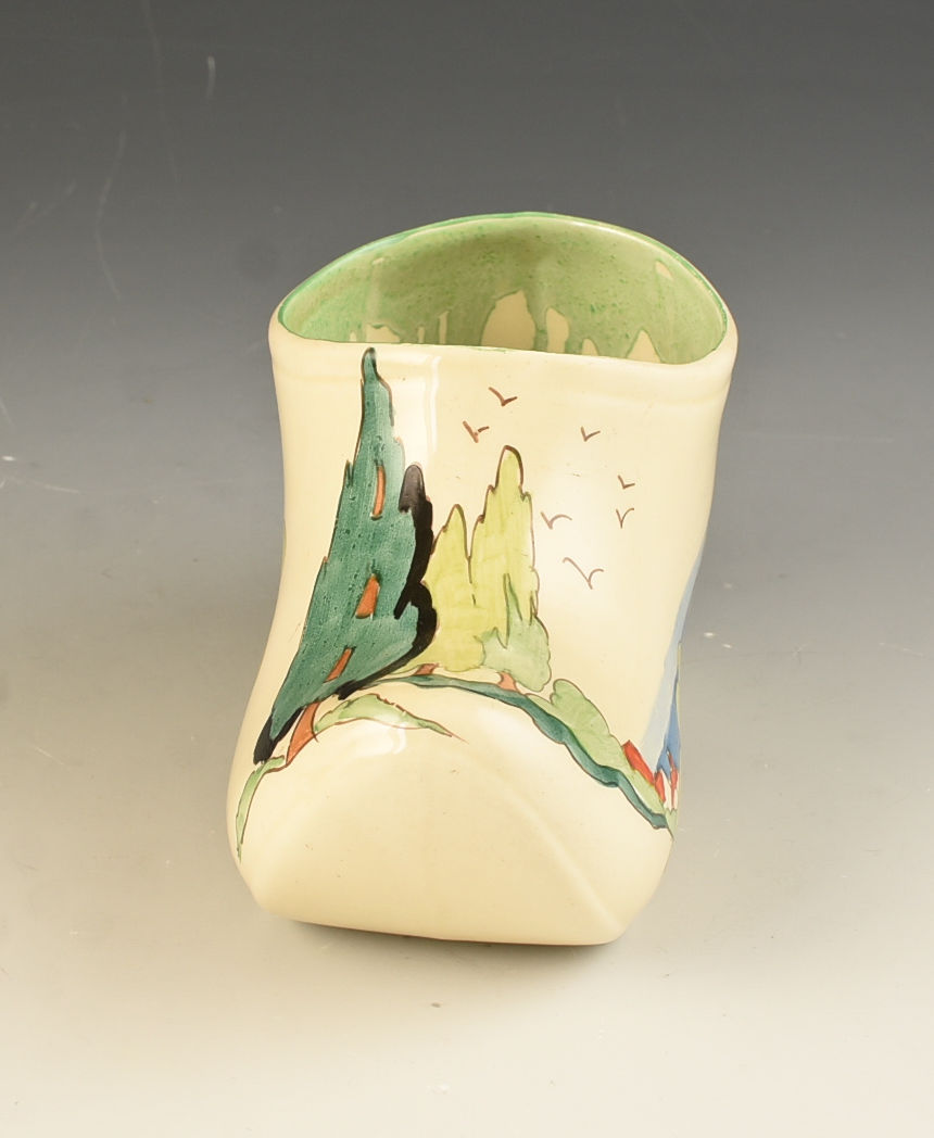 A rare landscape design that really works nicely on this shape. A full version of the pattern in crisp clean enamels decorated cleverly to the shape. GUARANTEED to be free from damage or restoration it measures 5.25" and is fully signed to the underside.