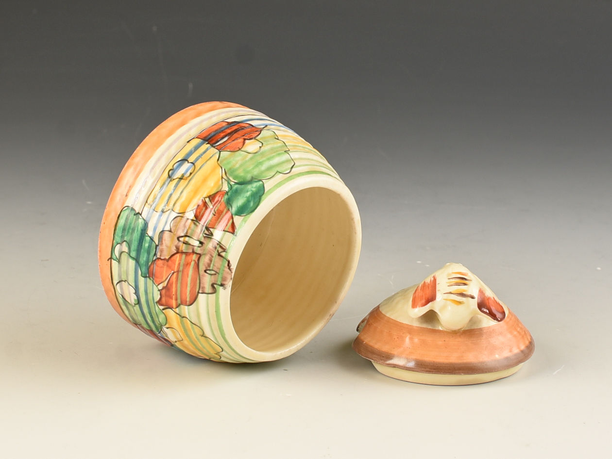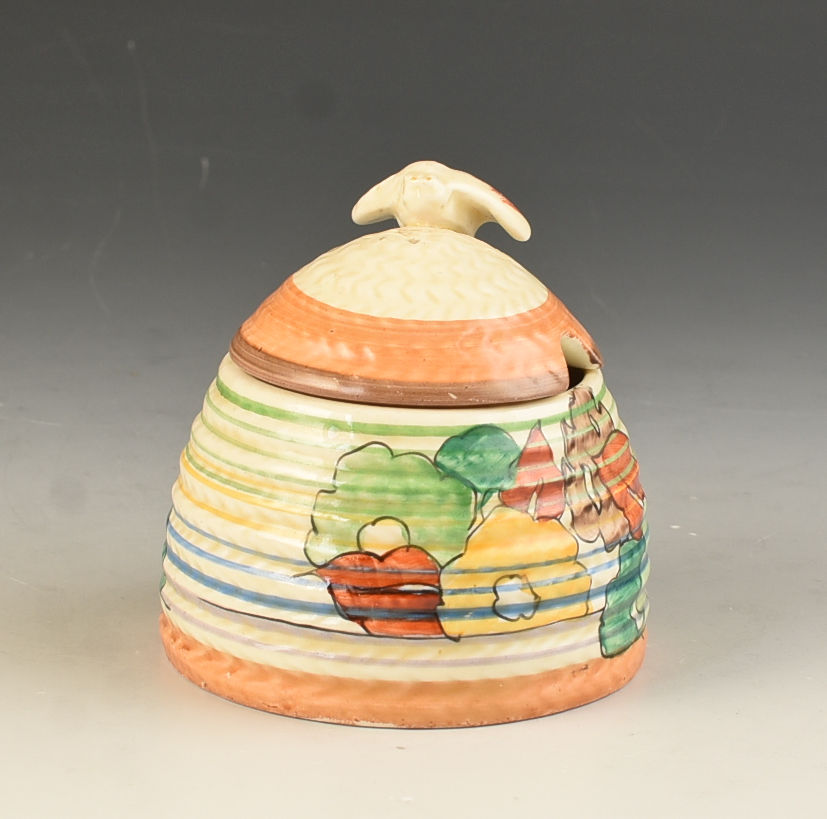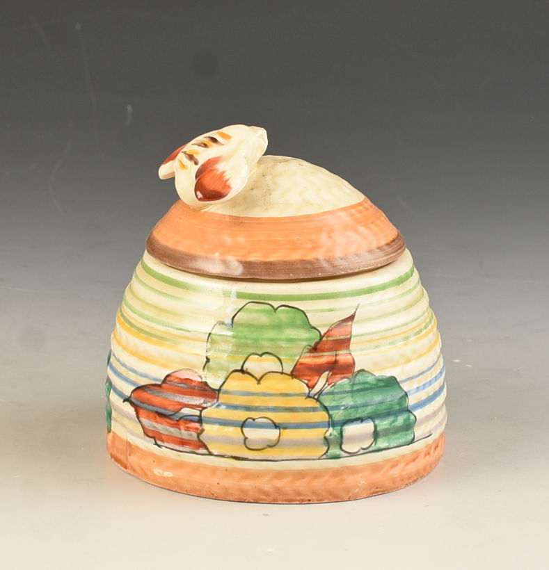 A very nicely decorated smaller size Beehive honeypot in the Green colourway of Capri. This is the rarer colourway of this pattern and is a really good example showing a full version of the pattern and with it's correct original lid. GUARANTEED to be free from damage or restoration it measures 7.5cm in height and is fully signed to the base.