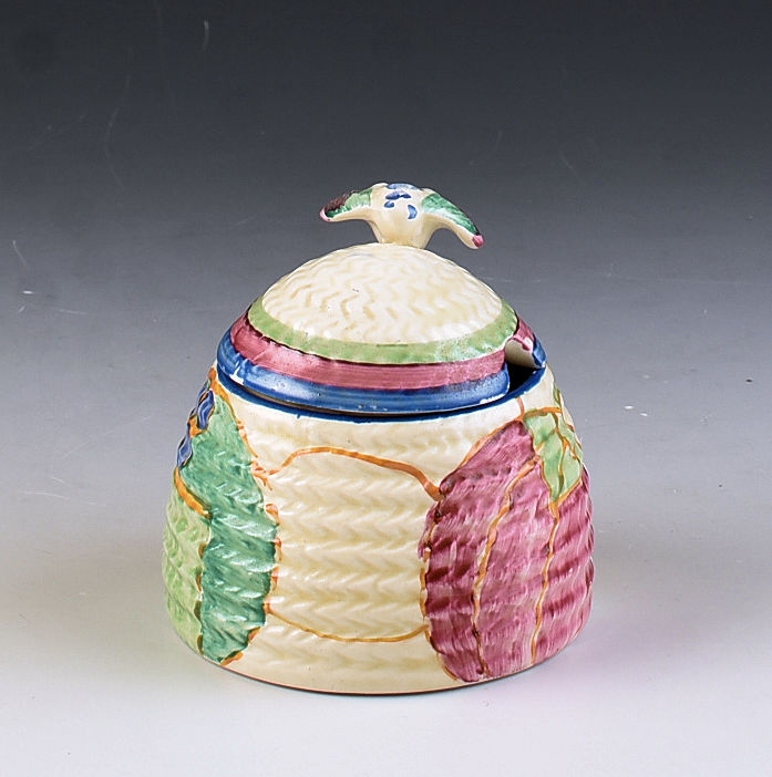 A really clean and nicely decorated small size beehive honeypot in the pastel colourway of Melon. This will date to 1932 and has it's correct original lid. GUARANTEED to be free from damage or restoration it measures 3" or 7cm in height and is fully signed to the base.