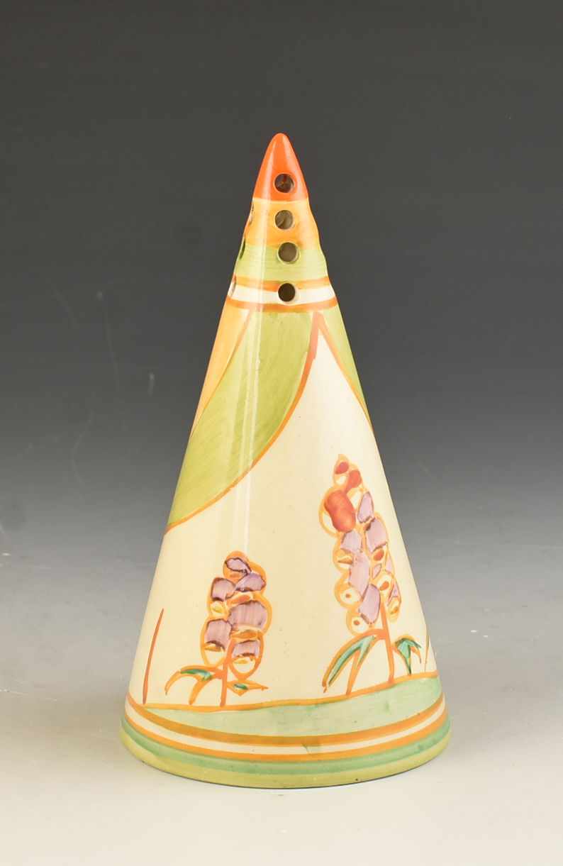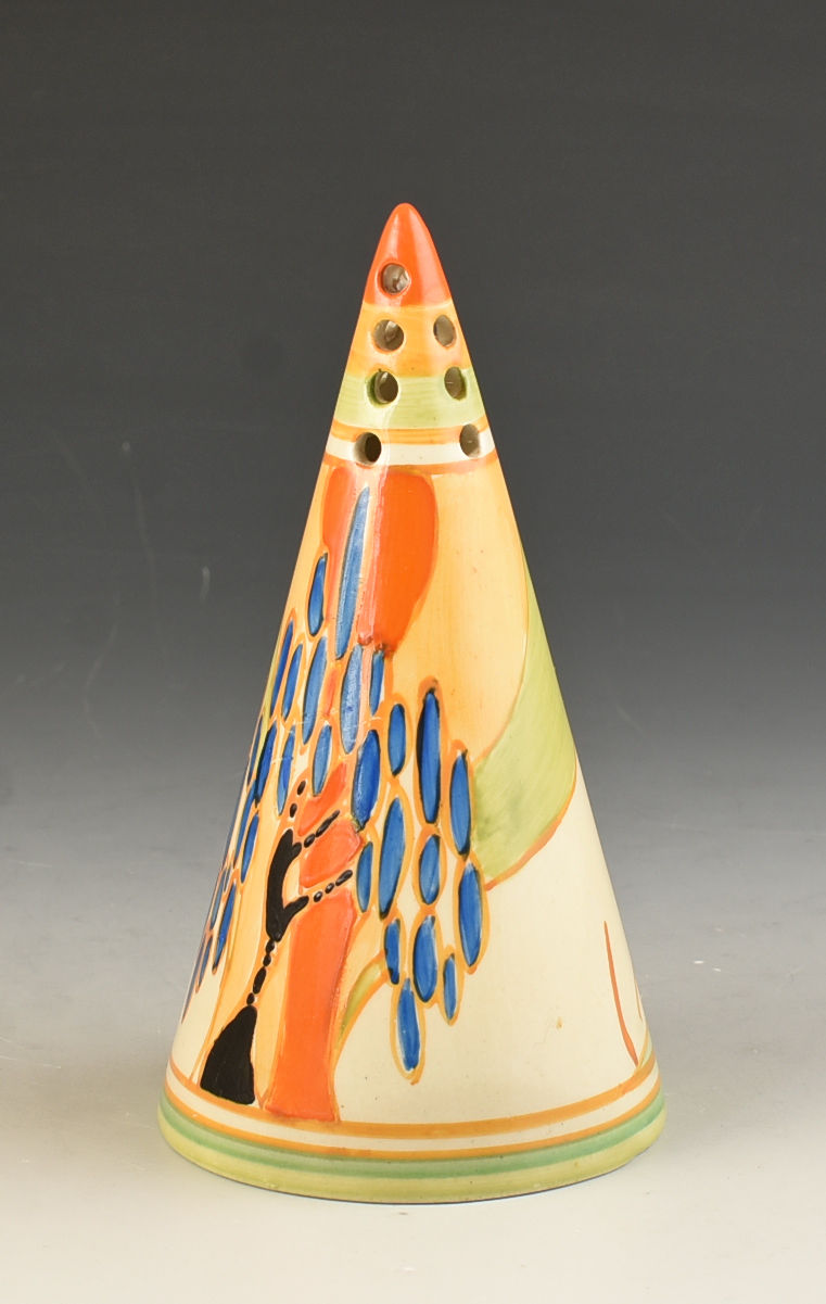 As good and as well painted a Windbells sifter as you'll ever see. A really strong image in bold colours with shallow banding to the base that really shows the pattern well. The sifter carries a full version of the pattern and i can GUARANTEE to be free from damage or restoration. It measures5.3" or 13cm in height and is fully signed to the base.