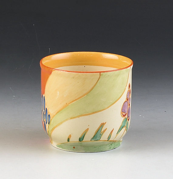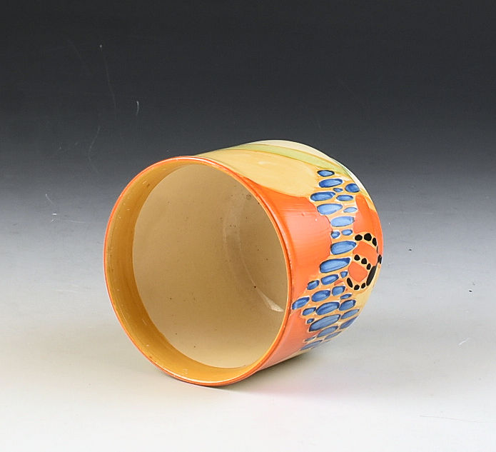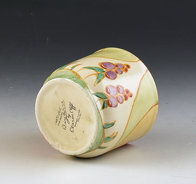 A really nicely painted fern pot in Windbells dating to 1933. Strong colours and a full version of the pattern. GUARANTEED to be free from damage or restoration it measures 7cm by 7.5cm and is fully signed to the base.