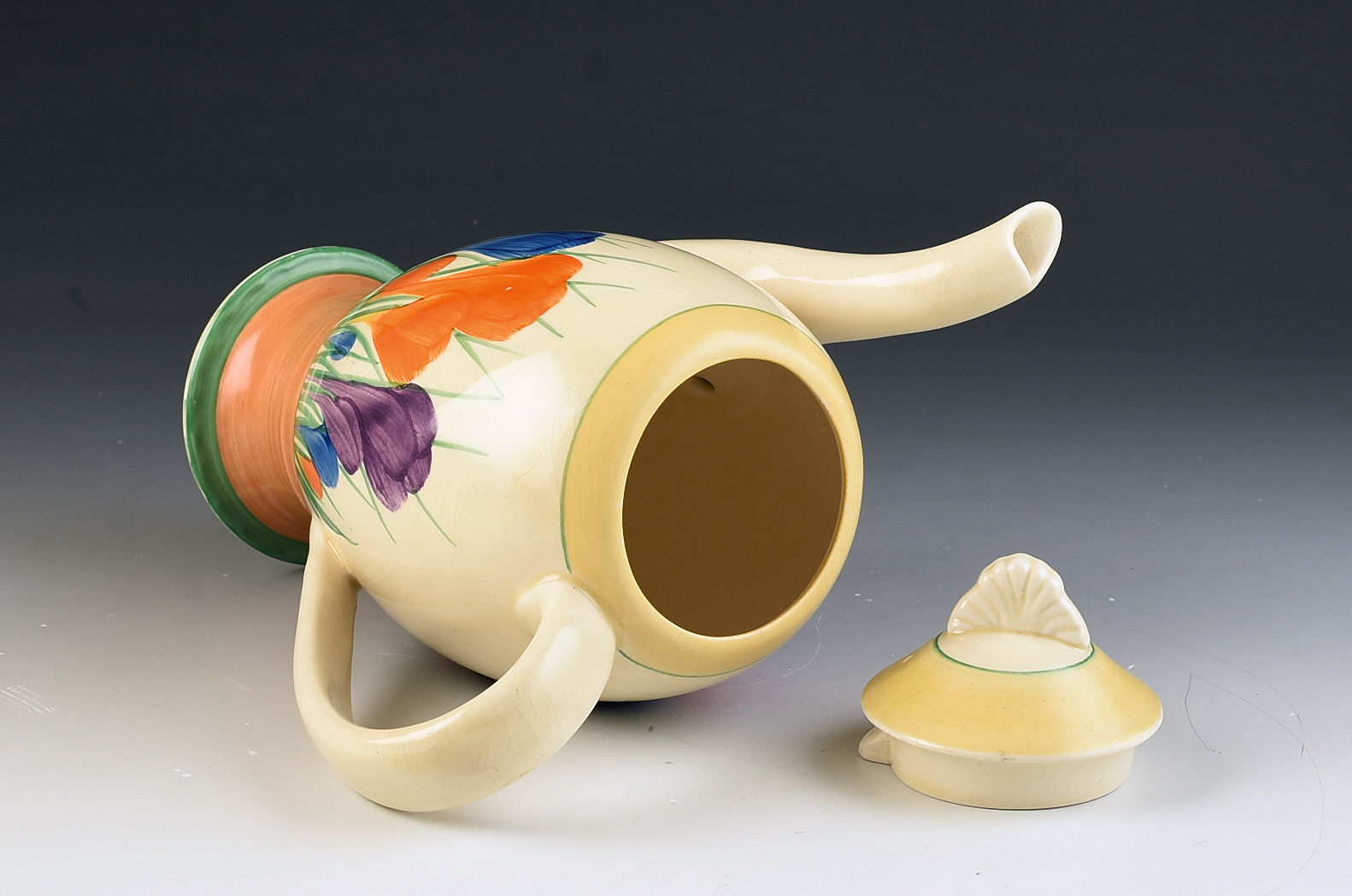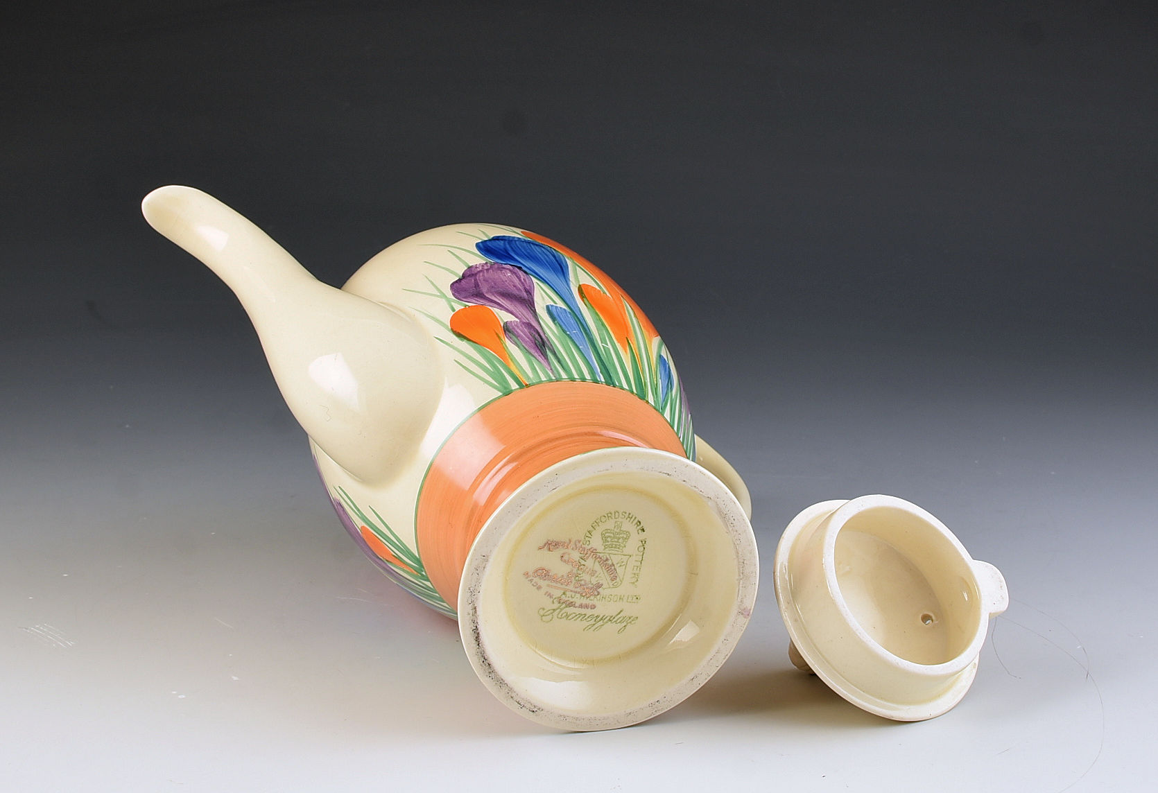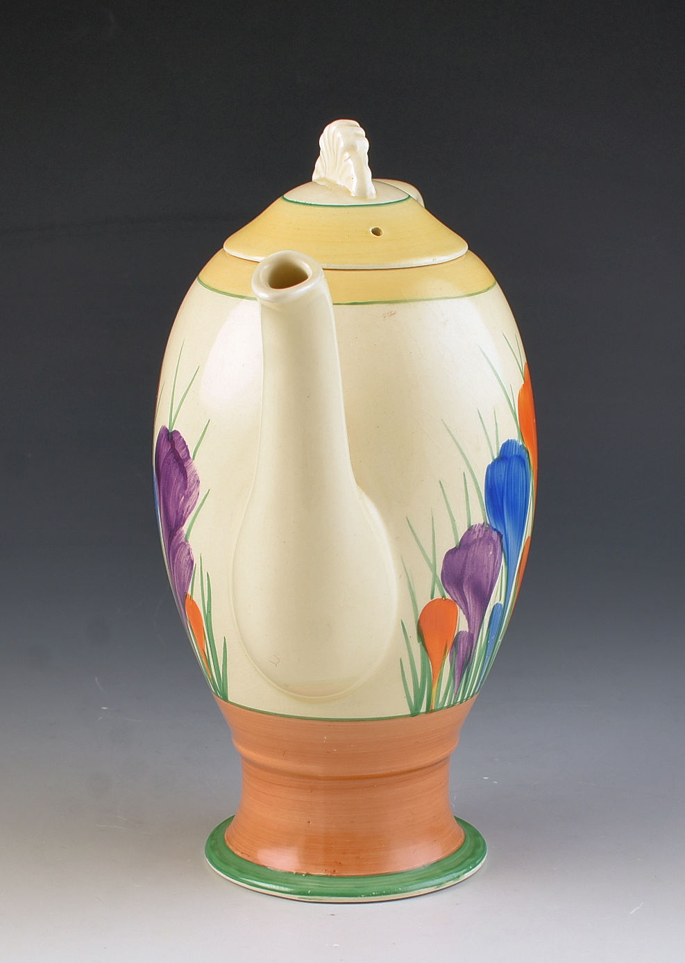 A rare shape coffee pot beautifully decorated in Crocus. This will date to around 1936 and is part of the Windsor shape range. Huge bunchy crocus, flawless condition and i can GUARANTEE no damage or restoration. It measures 8" in height, is 8" wide and fully signed to the base.