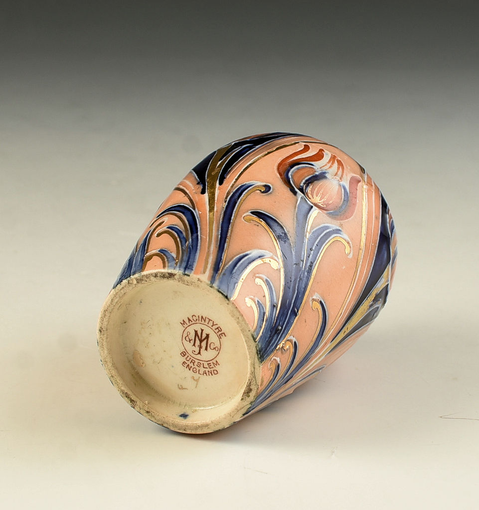 A superb miniature vase decorated in a bold version of Alhambra. This vase will date to around 1903, is a very good example and i can GUARANTEE to be free from damage or restoration. Macintyre marks to the base and measures 8cm in height.