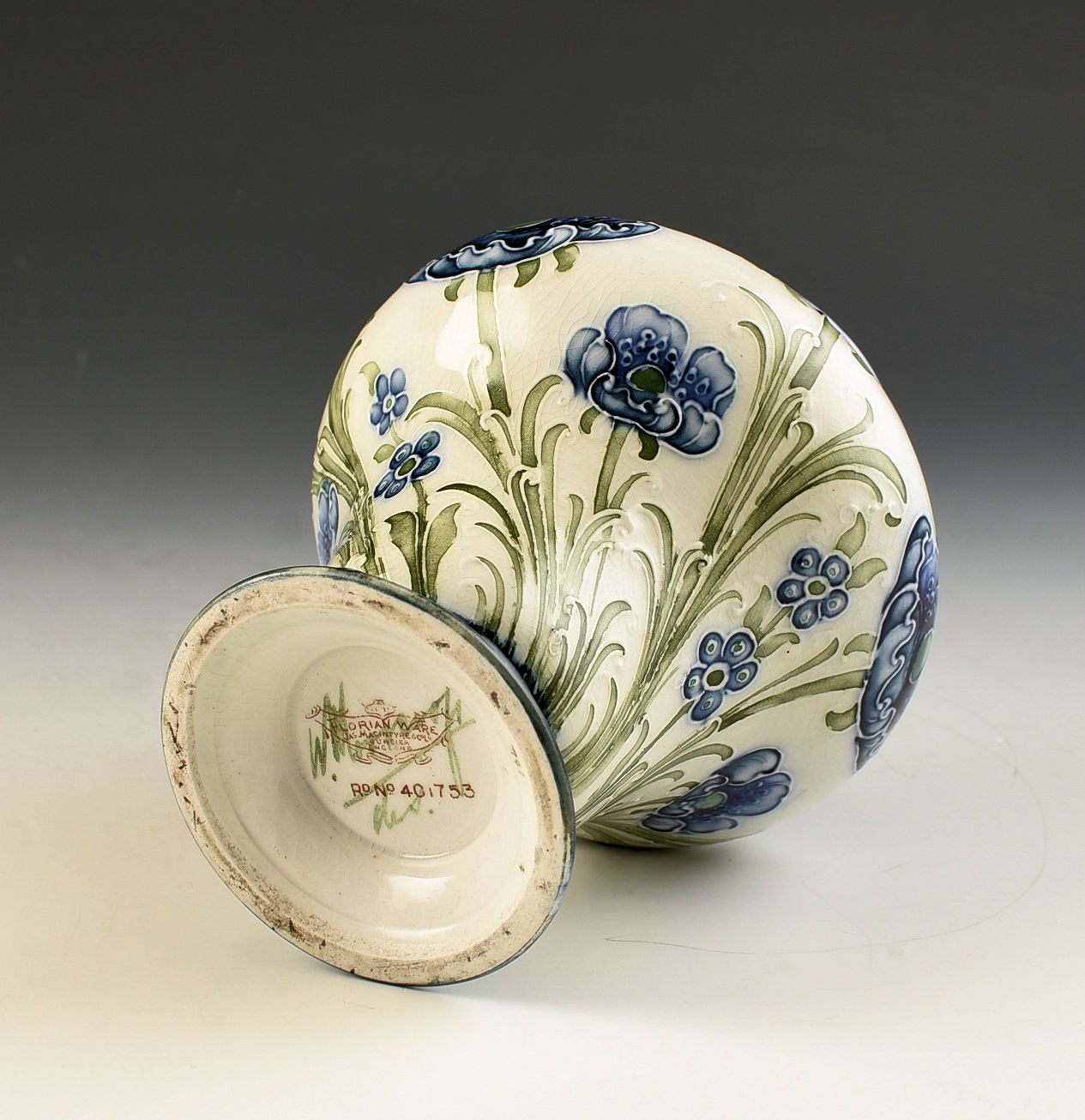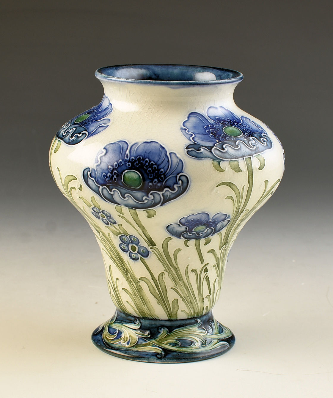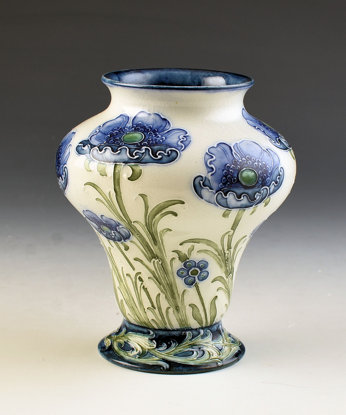A superbly decorated Poppy on white ground vase that will date to around 1905. Beautifully decorated with crisp clear flowers and no runs. GUARANTEED to be free from damage or restoration it measures 13cm in height, 11cm wide and fully signed to the base.